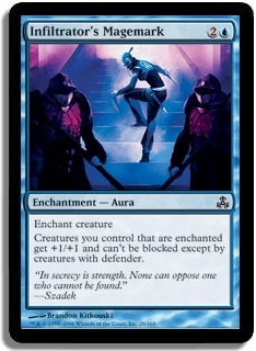 Creatures you control that are enchanted get +1/+1 and can't be blocked except by creatures with defender.