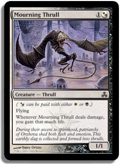 Whenever Mourning Thrull deals combat damage, you gain that much life.