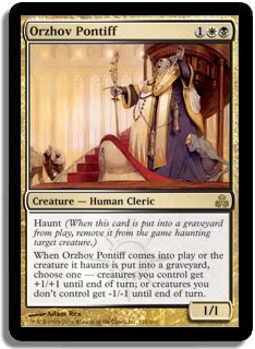 When Orzhov Pontiff comes into play or the creature it haunts is put into a graveyard, choose one - creatures you control get +1/+1 until end of turn; or creatures you don't control get -1/-1 until end of turn.