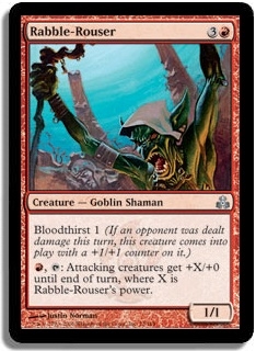 (R),(T): Attacking creatures you control get +X/+0 until end of turn, where X is Rabble-Rouser's Power.