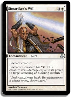 Enchanted creature has %E2%80%9C(T): This creature deals damage equal to its power to target attacking or blocking creature.%E2%80%9D