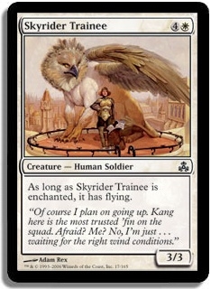 As long as Skyrider Trainee in enchanted, it gains flying.
