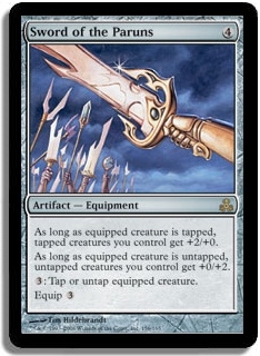 As long as equipped creature is tapped, tapped creatures you control get +2/+0.
