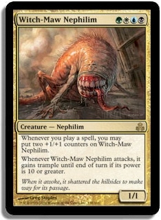 Whenever you play a spell, you may put two +1/+1 counters on Witch-Maw Nephilim.