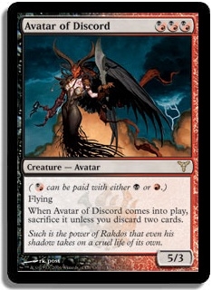 When Avatar of Discord comes into play, sacrifice it unless you discard two cards.