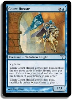 When Hussar of the Court comes into play, look at the top 3 cards of your library. Put one of them into your hand and the rest on the bottom of your library.