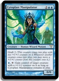 U,T: Gain control of target creature with a +1/+1 counter on it as long as Cytoplast Manipulator remains in play.