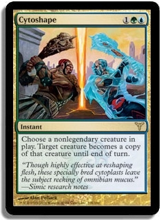 Chose a nonlegendary creature in play. Target creature becomes a copy of the chosen creature until end of turn.