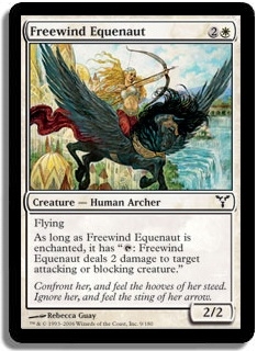 As long as Freewind Equenaut is enchanted, it has: "T: Freewind Equenaut deals 2 damage to target attacking or blocking creature".