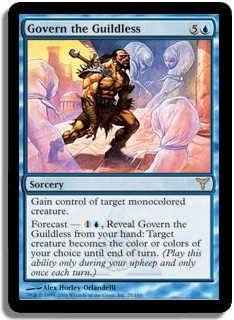 Forecast - 1U, Reveal Govern the Guildless from your hand: Target creature becomes the color or colors of your choice until end of turn. (Play this ability only during your upkeep and only once each turn.)