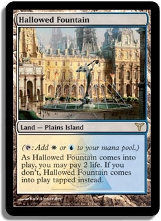 As Hallowed Fountain comes into play, you may pay 2 life. If you don't, Hallowed Fountain comes into play tapped instead.