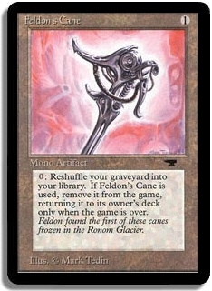 <0>: Reshuffle your graveyard into your library. If Feldon's Cane is used, remove it from the game, returning it to its owner's deck only when the game is over.