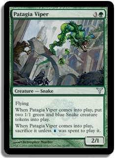 When Patagia Viper comes into play, put two 1/1 green and blue Snake creature tokens into play.