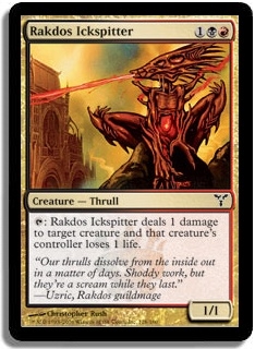 T: Rakdos Ickspitter deals 1 damage to target creature and that creature's controller loses 1 life.