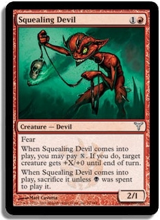 When Squealing Devil comes into play, you may pay X. If you do, target creature gets +X/+0 until end of turn.