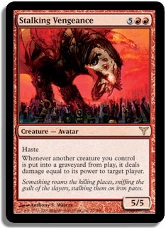 Whenever another creature you control is put into a graveyard from play, it deals X damage to target player, where X is the power of that creature.