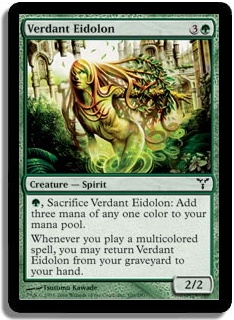 Whenever you play a multicolored spell, you may return Verdant Eidolon from your graveyard to your hand.
