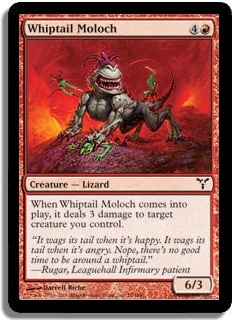 When Whiptail Moloch comes into play, it deals 3 damage to target creature you control.