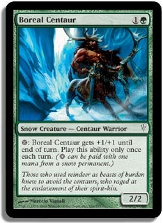 oSi: Boreal Centaur gets +1/+1 until end of turn. Play this ability only once each turn. (oSi can be paid with one mana from a snow permanent.)