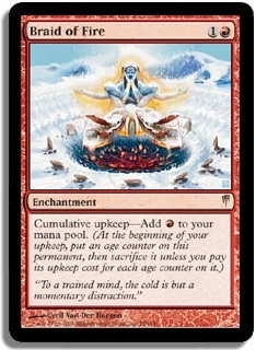 Cumulative upkeep-Add R to your mana pool. (At the beginning of your upkeep, put an age counter on this permanent, then sacrifice it unless you pay its upkeep cost for each age counter on it.)
