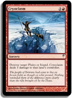 Destroy target Plains or Island. Cryoclasm deals 3 damage to that land's controller.