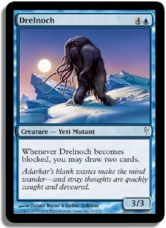 Whenever Drelnoch becomes blocked, you may draw two cards.