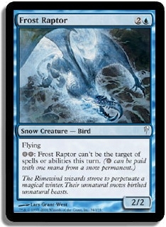 Flying oSioSi: Frost Raptor can't be the target of spells or abilities this turn. (oSi can be paid with one mana from a snow permanent.)