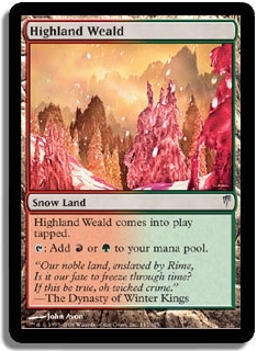 Highland Weald comes into play tapped. T Add R or G to your mana pool.
