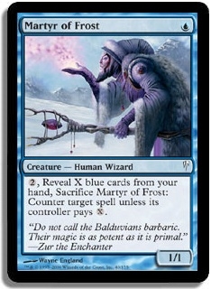 2, Reveal X blue cards from your hand, Sacrifice Martyr of Frost: Counter target spell unless its controller pays X.