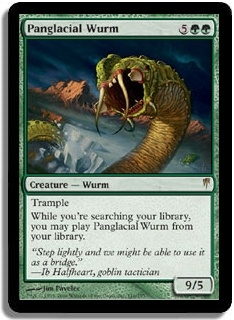 Trample While you're searching your library, you may play Panglacial Wurm from your library.