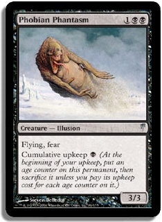 Flying, fear Cumulative upkeep B (At the beginning of your upkeep, put an age counter on this permanent, then sacrifice it unless you pay its upkeep cost for each age counter on it.)