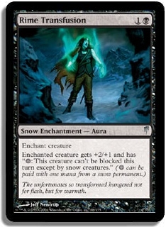 Enchant creature Enchanted creature gets +2/+1 and has "oSi: This creature can't be blocked this turn except by snow creatures." (oSi can be paid with one mana from a snow permanent.)