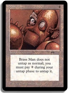 Brass Man does not untap as normal; you must pay <1> during your untap phase to untap it.
