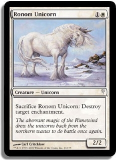 Sacrifice Ronom Unicorn: Destroy target enchantment.