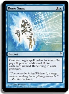 Counter target spell unless its controller pays 2 plus an additional 2 for each card named Rune Snag in each graveyard.