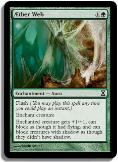 Flash (You may play this spell any time you could play an instant.) Enchant creature Enchanted creature gets +1/+1, can block as though it had flying, and can block creatures with shadow as though they didn't have shadow.