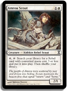4, T Search your library for a Rebel card with converted mana cost 3 or less and put it into play. Then shuffle your library.