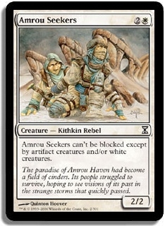 Amrou Seekers can't be blocked except by artifact creatures and/or white creatures.