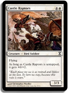 Flying As long as Castle Raptors is untapped, it gets +0/+2.