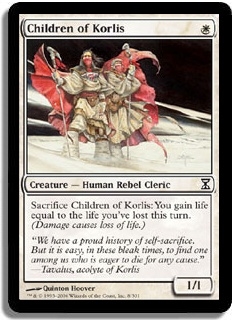 Sacrifice Children of Korlis: You gain life equal to the life you've lost this turn. (Damage causes loss of life.)