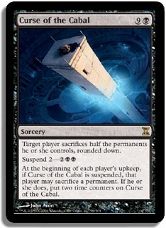 Target player sacrifices half the permanents he or she controls, rounded down. Suspend 2-2BB At the beginning of each player's upkeep, if Curse of the Cabal is suspended, that player may sacrifice a permanent. If he or she does, put two time counters on Curse of the Cabal.