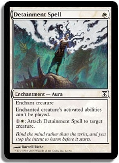 Enchant creature Enchanted creature's activated abilities can't be played. 1W: Attach Detainment Spell to target creature.