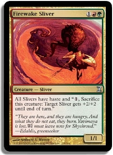 All Slivers have haste and "1, Sacrifice this creature: Target Sliver gets +2/+2 until end of turn."