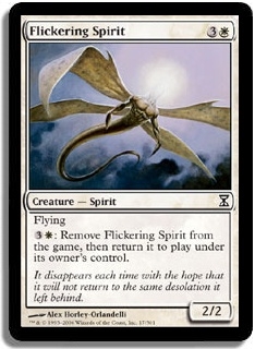 Flying 3W: Remove Flickering Spirit from the game, then return it to play under its owner's control.