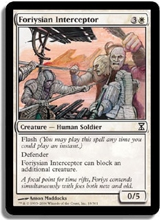 Flash (You may play this spell any time you could play an instant.) Defender Foriysian Interceptor can block an additional creature.