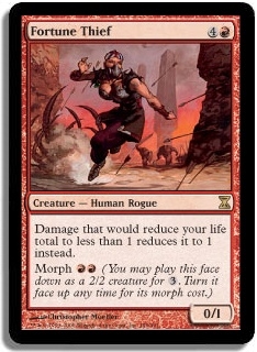 Damage that would reduce your life total to less than 1 reduces it to 1 instead. Morph RR (You may play this face down as a 2/2 creature for 3. Turn it face up any time for its morph cost.)