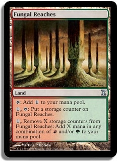 T Add 1 to your mana pool. 1, T Put a storage counter on Fungal Reaches. 1, Remove X storage counters from Fungal Reaches: Add X mana in any combination of R and/or G to your mana pool.