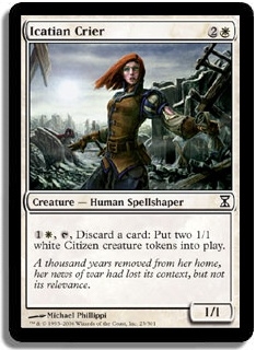 1W, T, Discard a card: Put two 1/1 white Citizen creature tokens into play.