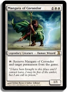T Remove Mangara of Corondor and target permanent from the game.