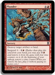 Destroy target artifact or land. Suspend 4-1R (Rather than play this card from your hand, you may pay 1R and remove it from the game with four time counters on it. At the beginning of your upkeep, remove a time counter. When the last is removed, play it without paying its mana cost.)